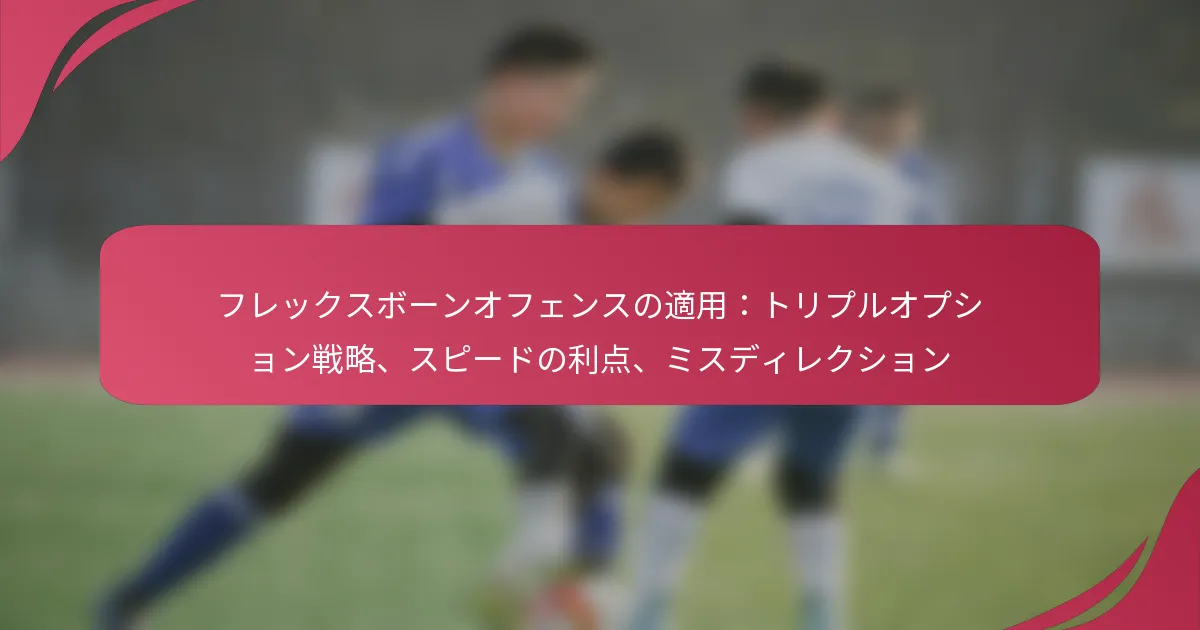 フットボールにおけるミスディレクションとは、プレイの実際の方向についてディフェンスを欺く戦術を指します。この戦略はフレックスボーンオフェンスにおいて重要であり、選手のスピードと敏捷性を活用してミスマッチを作り出し、ランニングレーンを開放します。効果的なミスディレクションは大きなプレイにつながり、ディフェンスを混乱させ、オフェンスの次の動きを予測するのを難しくします。