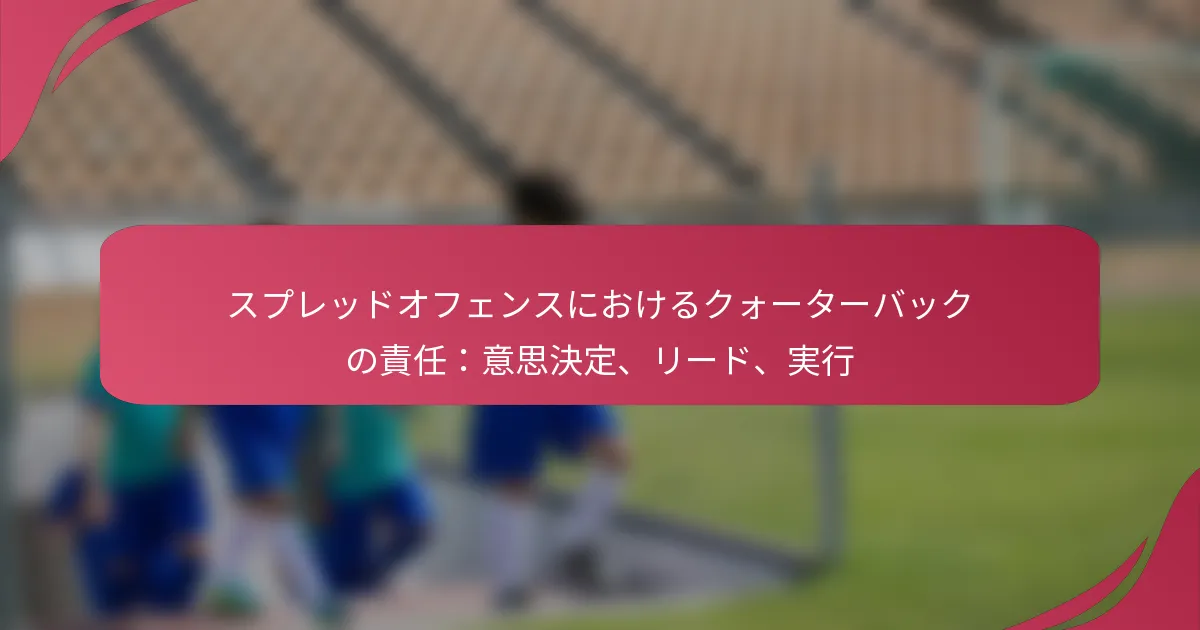 スプレッドオフェンスにおけるクォーターバックの主な責任には、迅速な意思決定、ディフェンスの読み取り、効果的なプレーの実行が含まれます。この攻撃スキームはスピードとスペースを強調し、クォーターバックが攻撃の潜在能力を最大化するために、思考と行動の両方で機敏であることを要求します。