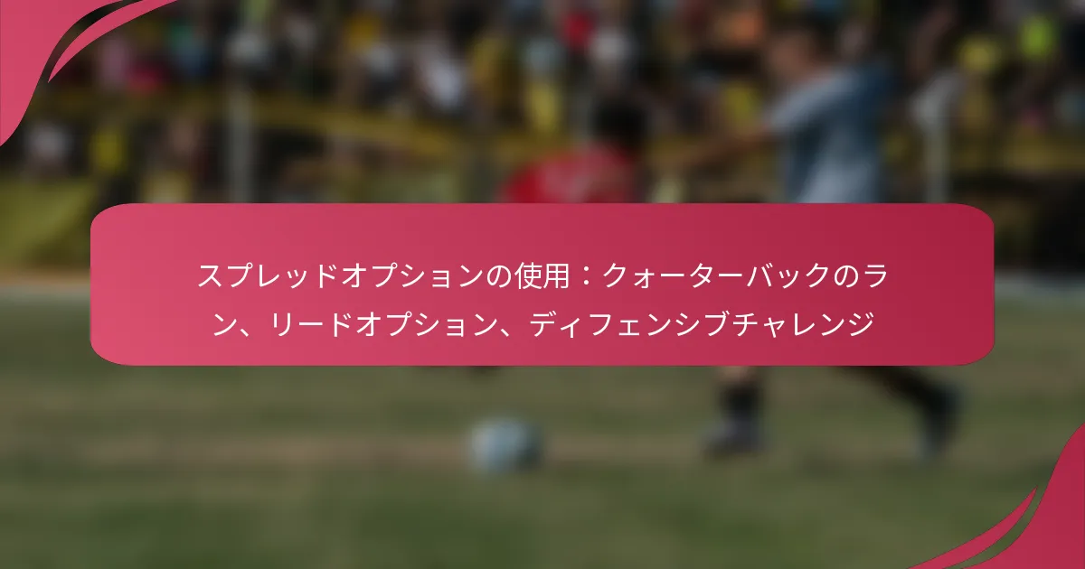 スプレッドオプションは、ディフェンスをフィールドの横方向に広げることに焦点を当てており、これによりランのレーンやパスの機会が生まれます。主要な要素には、クォーターバック、ランニングバック、ワイドレシーバーが含まれ、全員が協力してディフェンスの弱点を突く必要があります。